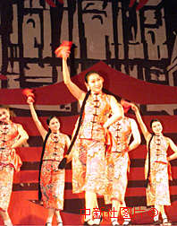 喜迎澳門回歸歌舞音樂會十四日在北京人民大會堂舉行。圖為陳愛蓮藝術(shù)團的演員在表演舞蹈《大姑娘美》。