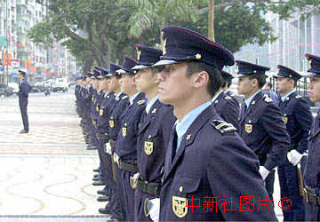 澳門警方儀仗隊為參加政權(quán)交接和回歸慶典的多項活動,加緊進行演練。