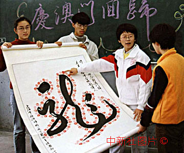 上海澄衷中學(xué)學(xué)生杜蔚瓊花了近三個月時間,用九十九種共一百九十九個龍形圖案印章和一個草書“龍”字,組成一幅由書法和篆刻藝術(shù)相結(jié)合的特殊禮品。它將作為上海市民的禮物,送給澳門特區(qū)行政長官何厚鏵。