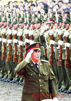 中國(guó)人民解放軍軍委副主席張萬(wàn)年19日在珠海檢閱駐澳部隊(duì)。中新社數(shù)碼傳真 王瑤 攝