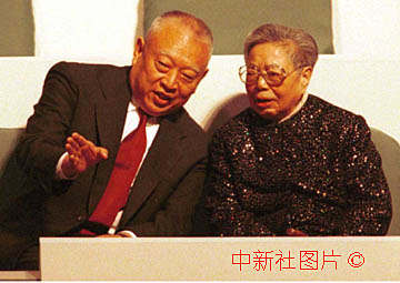 鄧小平遺孀卓琳和香港特首董建華在澳門政權(quán)交接儀式上。中新社傳真 李剛攝